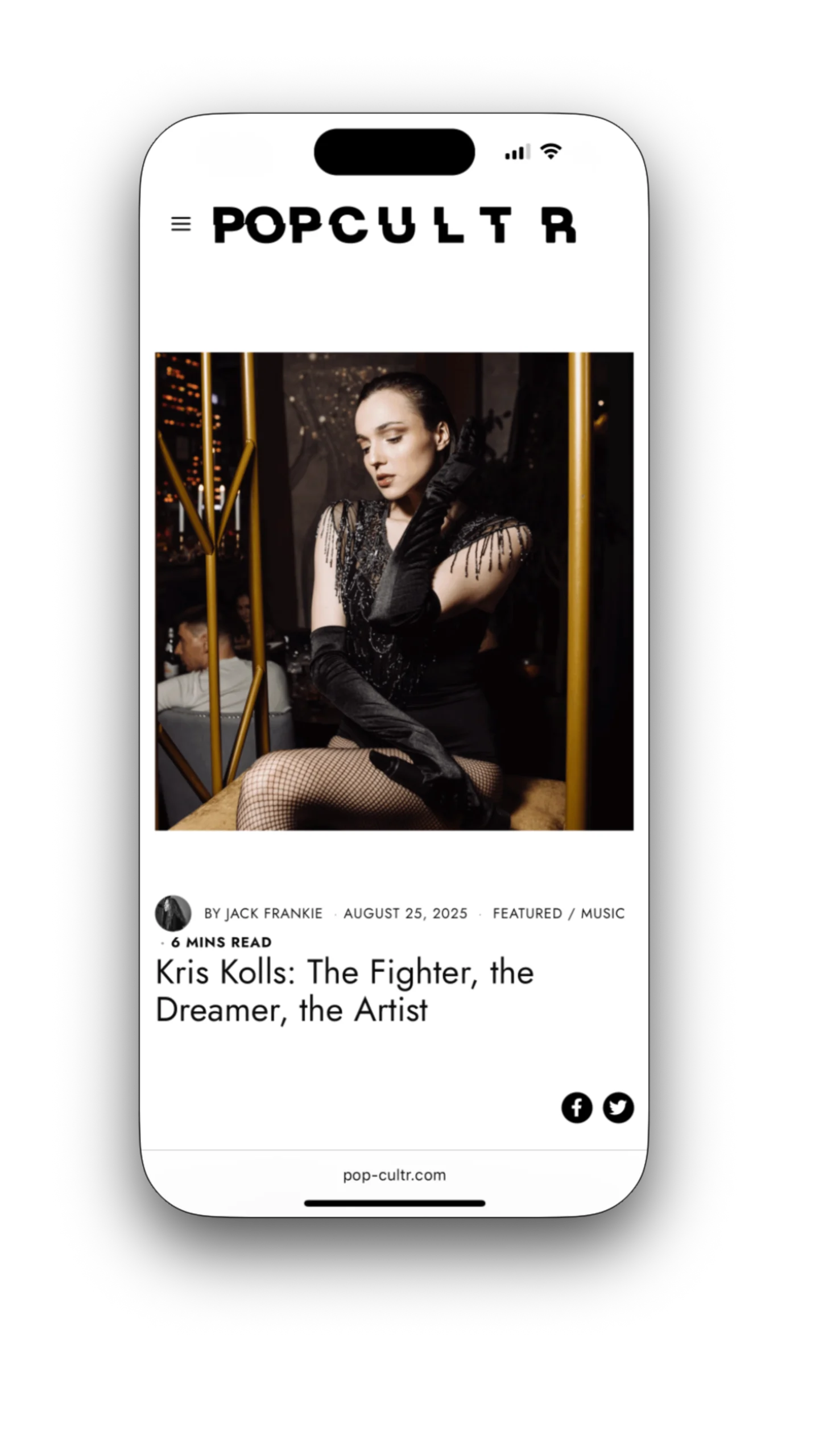 Kris Kolls is a singer, performer, and multidisciplinary artist. A classically trained pianist and graduate of the Gerasimov Institute of Cinematography (VGIK), Kris bridges music, visual art, and movement through performances that balance strength, elegance, and authenticity.